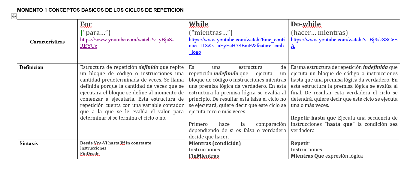 RESUMEN DE LAS ESTRUCTURAS REPETITIVAS: