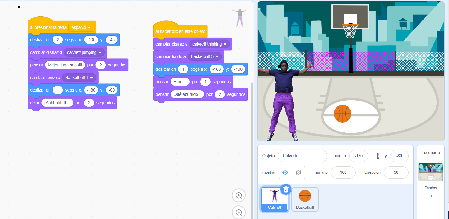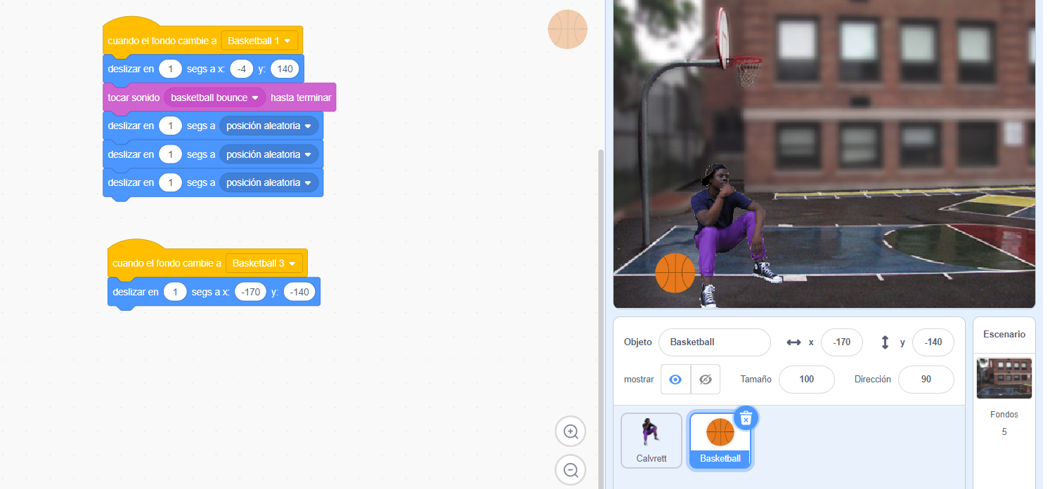 - que el personaje, piense en otra cosa, lance un balón, enceste y el balón caiga en punto arbritrario