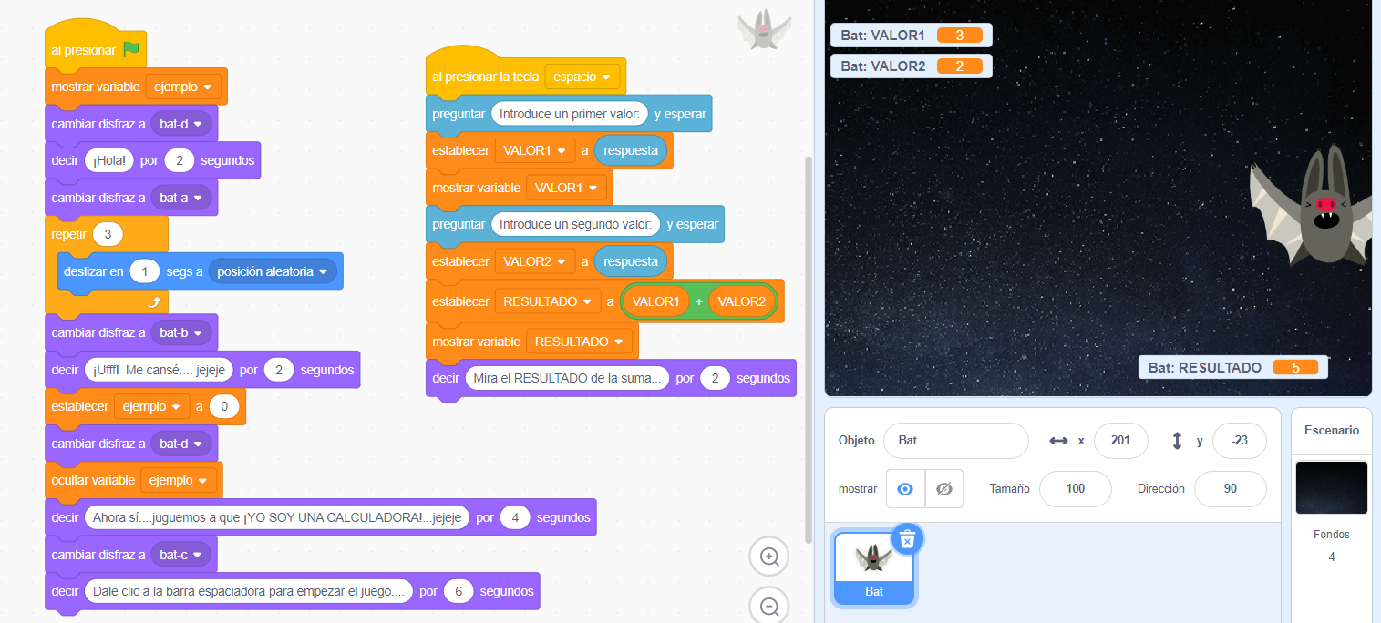 Uso de Variables y Operadores en la creación de un videojuego con Scratch.